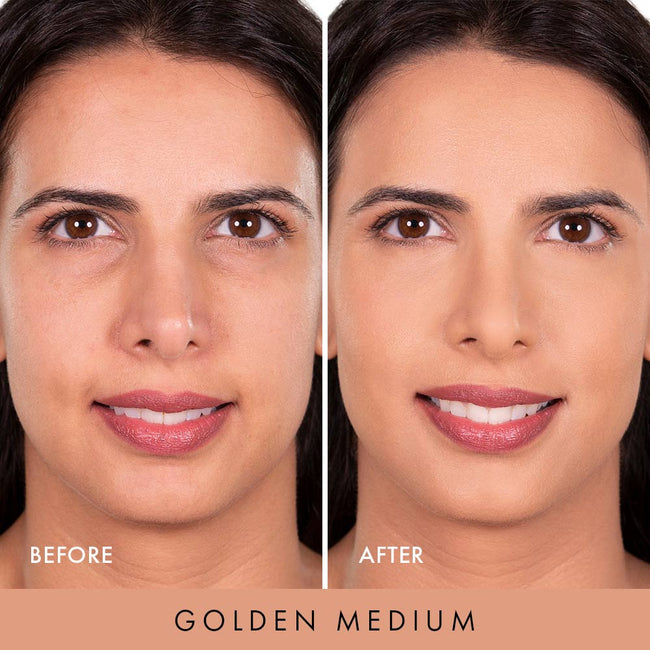 Swirl brush into powder and tap off excess, then pat onto desired areas and buff foundation onto skin using circular motions.
